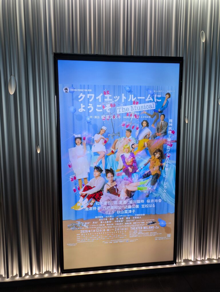 ・Bunkamura「クワイエットルームにようこそ The Musical」観劇してきました。前回参加したフリムンシスターズは稽古ピアノとしての参加もそれなりに長く、本番のバンドメンバーでもありましたが、今回の稽古ピアノは1週間のピンチヒッター。ということで半分は稽古場での観劇を楽しみに、もう半分は宮川彬良さんのスコアを弾きながら勉強する、というモチベーションで参加していました。
