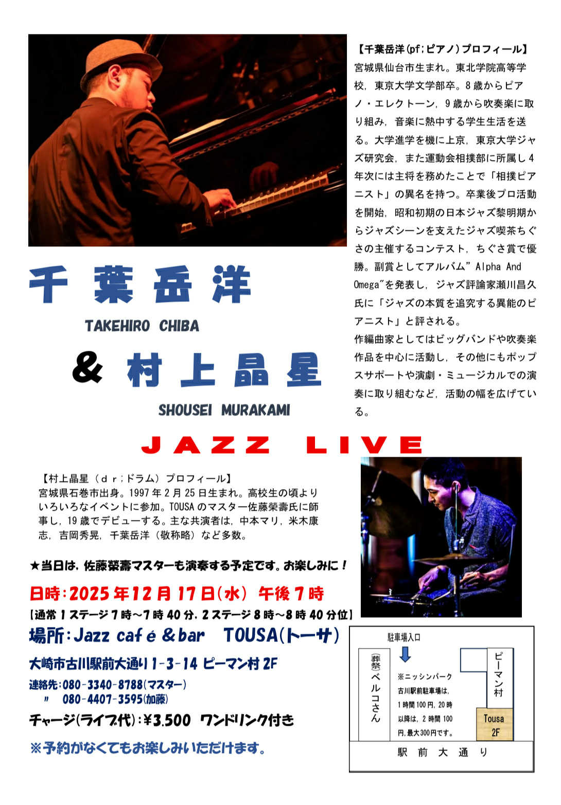 村上徳彦(Gt) 沢野源裕(Tp) 千葉岳洋(Pf)